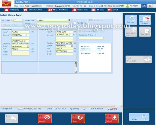 f. Reports are also available at counter and back office for the money orders booked