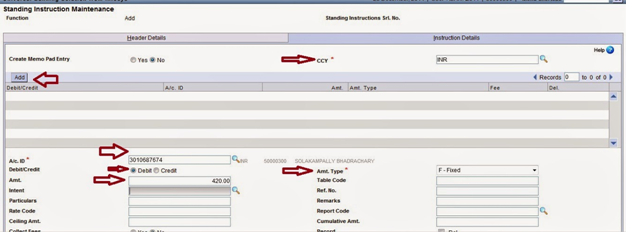- Note :- that for giving the standing instructions from TDA accounts(SCSS,MIS and TD) accounts to SB accounts we should not use this menu.