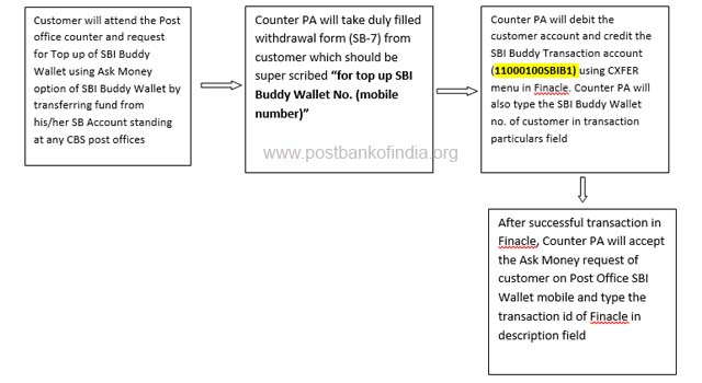 i. Customer should download buddy wallet from play store or apple store. Assistance may be required. The cashiers/Postal Assistant will be trained by SBI.