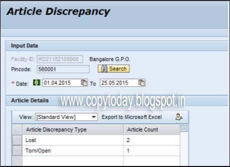 a) On the Delivery and Post Management System – Main Screen, click Article Discrepancy Report link under Reports block.